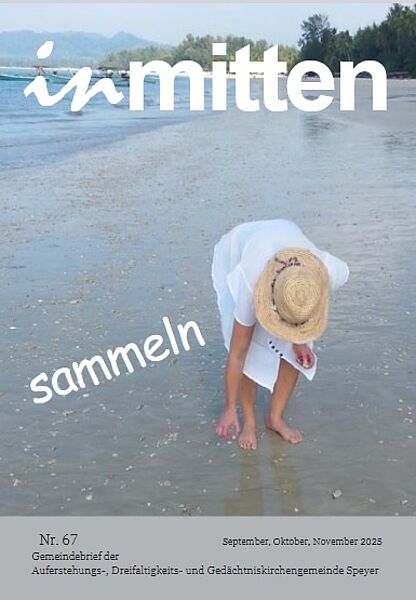 Unser Gemeindebrief wird zusammen mit der Auferstehungs- und der Gedächtniskirchengemeinde herausgegeben. Er informiert über die vielfältigen Angebote aller drei Gemeinden. Dabei hat jede Gemeinde ihr eigenes Profil. Unser "inmitten" erscheint vier Mal im Jahr. Ein Redaktionsteam sammelt Ideen und Beiträge, redigiert und macht Lust auf die kommenden Themen und Veranstaltungen. Von Dr. Rolf Klein wird er dann gesetzt und in den Druck geschickt. Eine große Zahl an Ehrenamtlichen sorgt im Anschluss dafür, dass der Gemeindebrief jeden Briefkasten erreicht! Die Auflage beträgt 4800 Stück.
